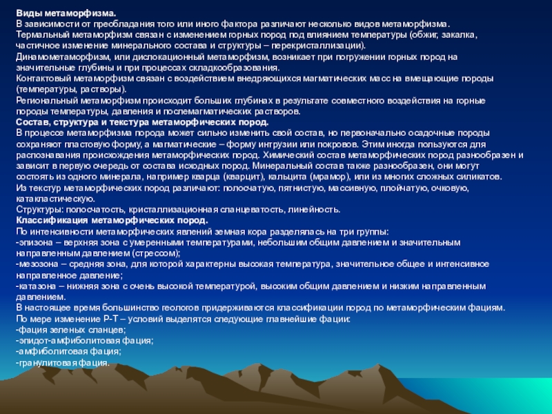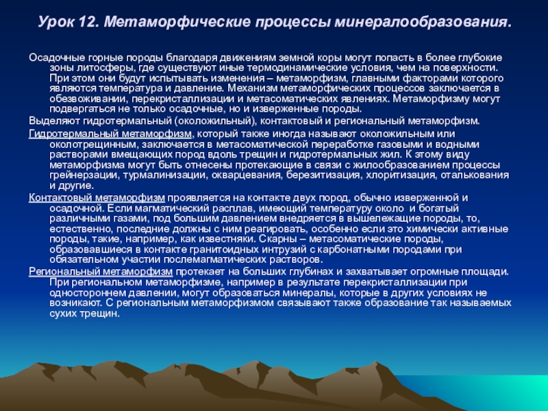 Региональный метаморфизм происходит больших глубинах в результате совместного воздействия на горные