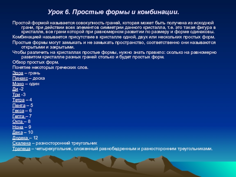 Чтобы различить на кристаллах простые формы, нужно знать правило: сколько на равномерно развитом кристалле разных граней столько и будет простых форм.