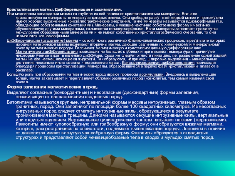 начнут изменяться. Совокупность процессов, приводящих к изменению горных пород, называется метаморфизмом.