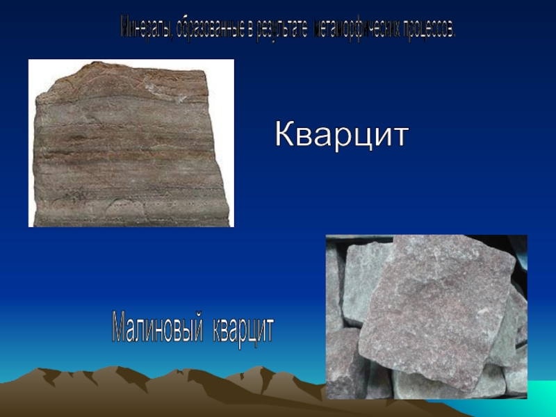 Кварциты представляют собой массивные плотные зернистые породы, состоящие главным образом из кварца.