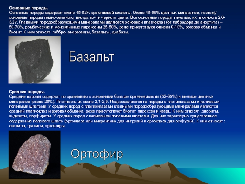 Амфиболиты – плотные или сланцеватые породы, состоящие в основном из роговой обманки и полевого шпата