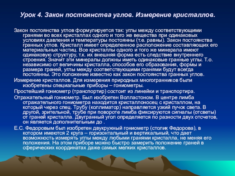 Слайд 7Урок 4. Закон постоянства углов. Измерение кристаллов.