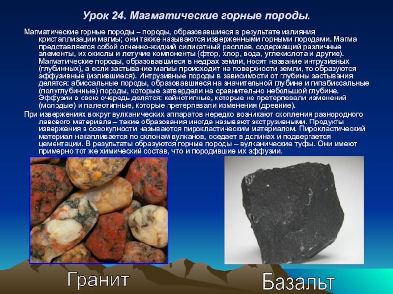 в результате застывания магмы, притерпевания температуры и осадков (воды).