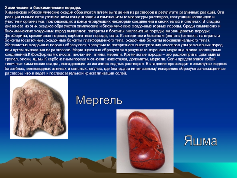 диагенеза из этих осадков образуются химические и биохимические осадочные горные породы. Среди химических и