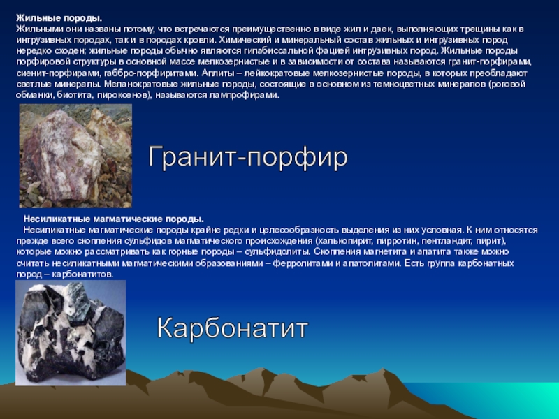 также изменение в ксенолитах внутри интрузивных тел. Продукты термального метаморфизма – это в основном
