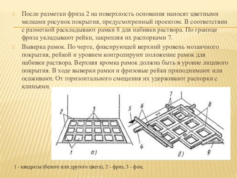 1 - квадраты (белого или другого цвета), 2 - фриз, 3 - фон,