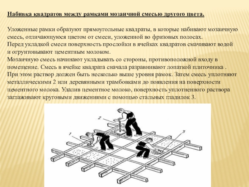 1 - маячные рейки, 2 - растворные марки, 3 - рейка с уровнем