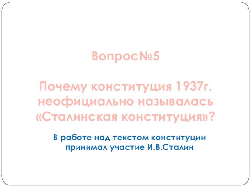 Почему конституция 1937г. неофициально называлась «Сталинская конституция»?