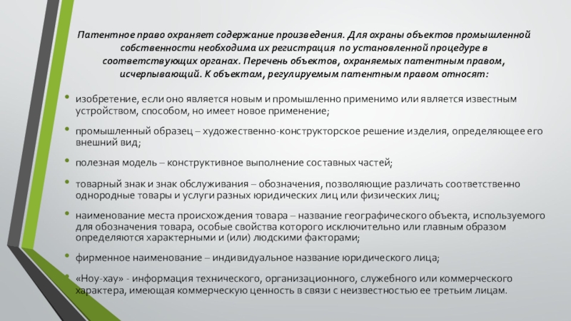 «Ноу-хау» - информация технического, организационного, служебного или коммерческого характера, имеющая коммерческую ценность в связи с неизвестностью ее третьим лицам.