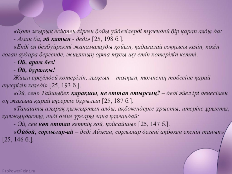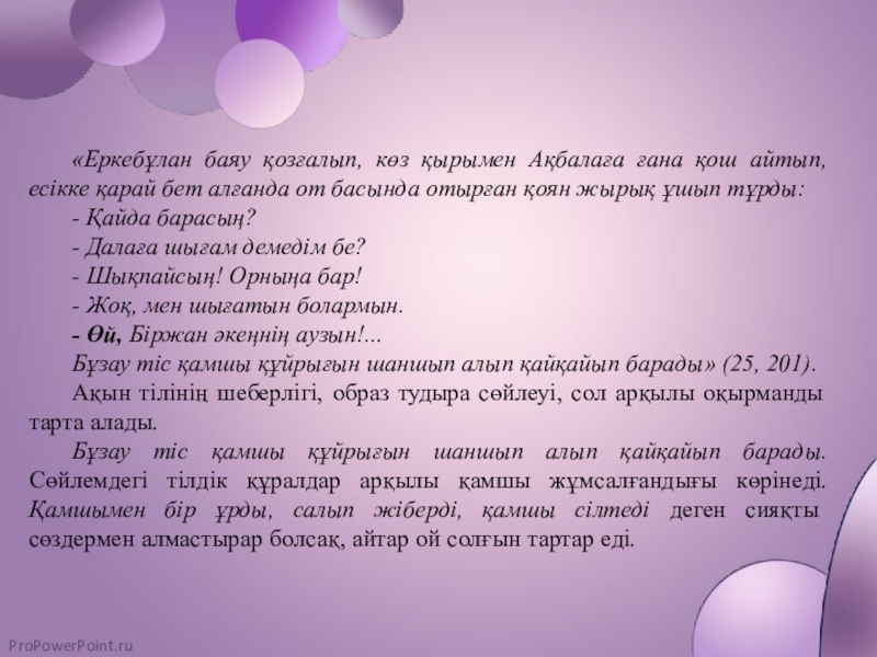 Слайд 8«Еркебұлан баяу қозғалып, көз қырымен Ақбалаға ғана қош айтып, есікке қарай