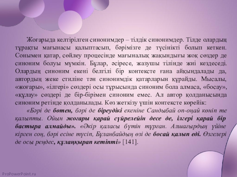 Слайд 14Жоғарыда келтірілген синонимдер – тілдік синонимдер. Тілде олардың тұрақты мағынасы қалыптасып,