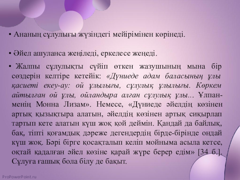 Слайд 19 Ананың сұлулығы жүзіндегі мейірімінен көрінеді.