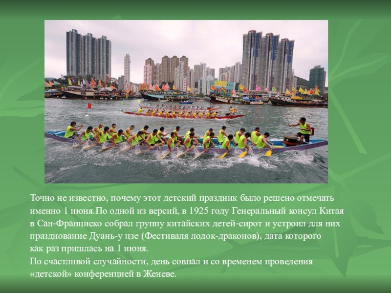 1 июня.По одной из версий, в 1925 году Генеральный консул Китая