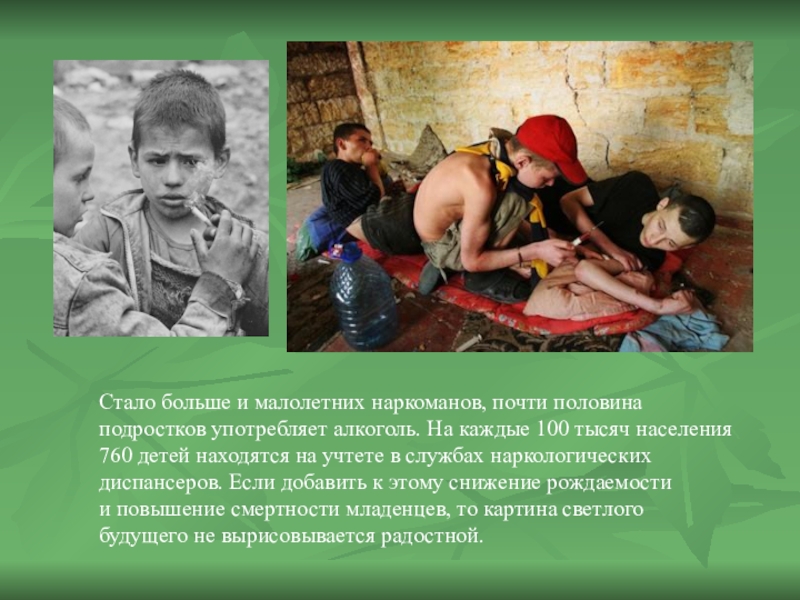 Слайд 14Стало больше и малолетних наркоманов, почти половина