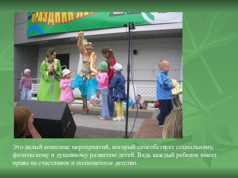 Слайд 7Это целый комплекс мероприятий, который способствует социальному,