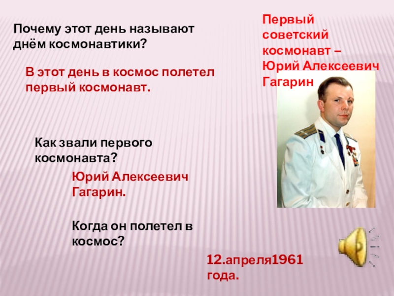Как звали первого космонавта?