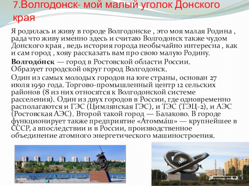 Слайд 287.Волгодонск- мой малый уголок Донского края