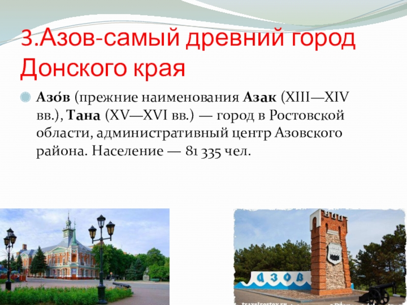 Слайд 113.Азов-самый древний город Донского края