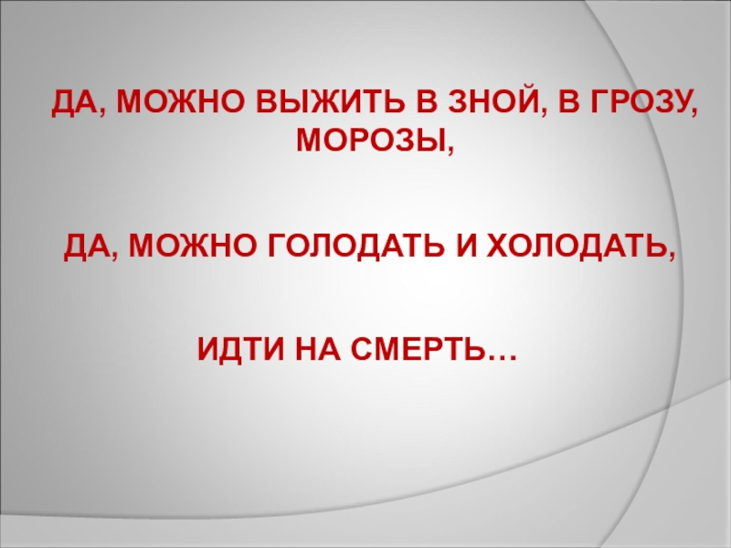 Слайд 13ДА, МОЖНО ВЫЖИТЬ В ЗНОЙ, В ГРОЗУ, МОРОЗЫ,