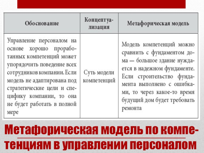 Слайд 12Метафорическая модель по компе-тенциям в управлении персоналом
