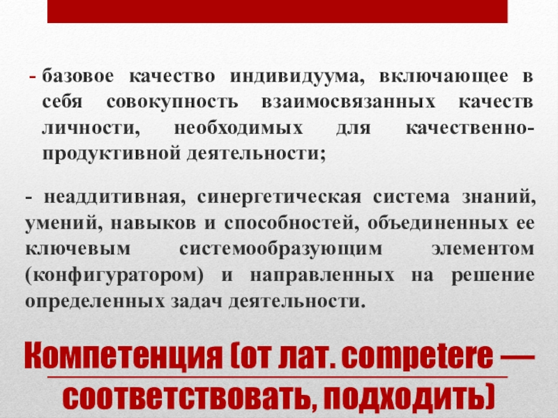 Слайд 10Компетенция (от лат. competere — соответствовать, подходить)