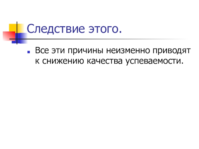 Следствие этого.Все эти причины неизменно приводят к снижению качества успеваемости.