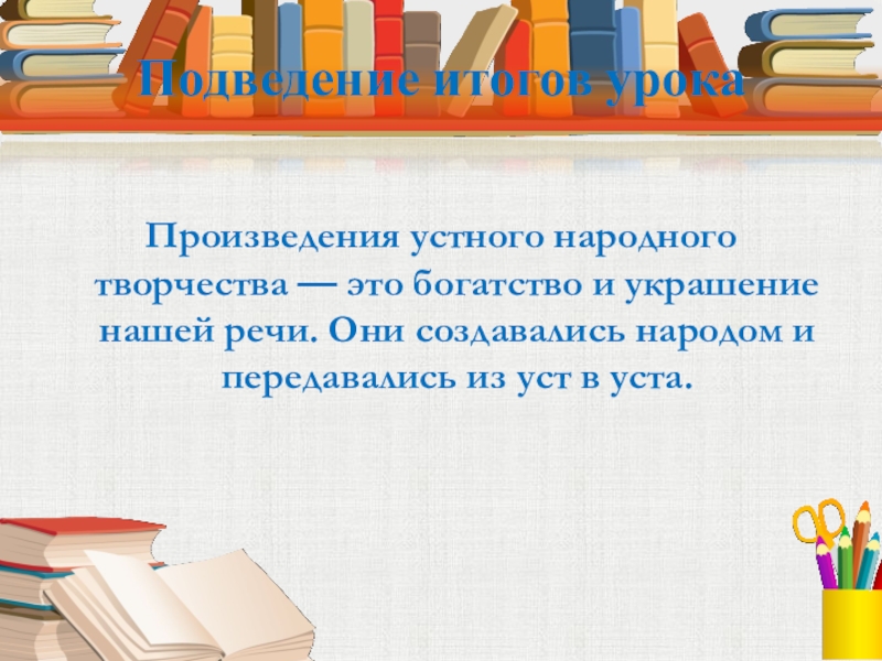 Произведения устного народного творчества — это богатство и украшение нашей речи.