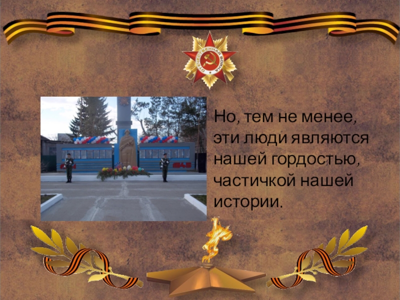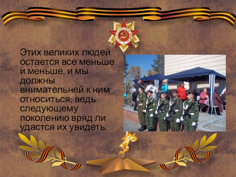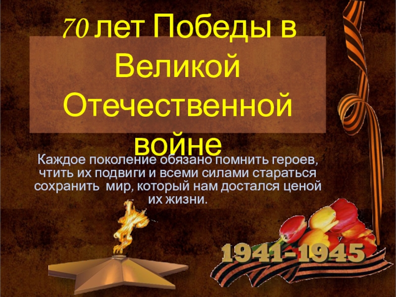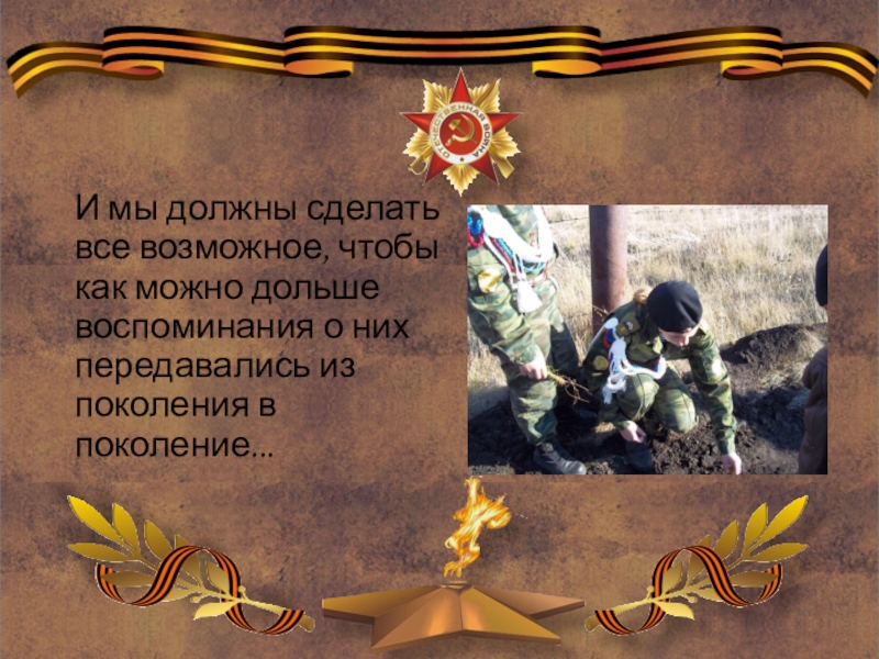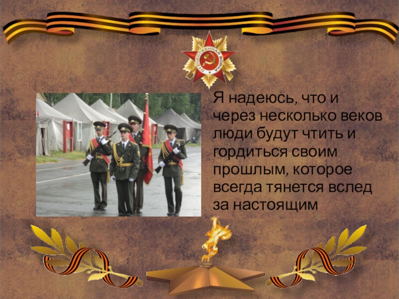 чтить их подвиги и всеми силами стараться сохранить мир, который нам достался ценой их жизни.