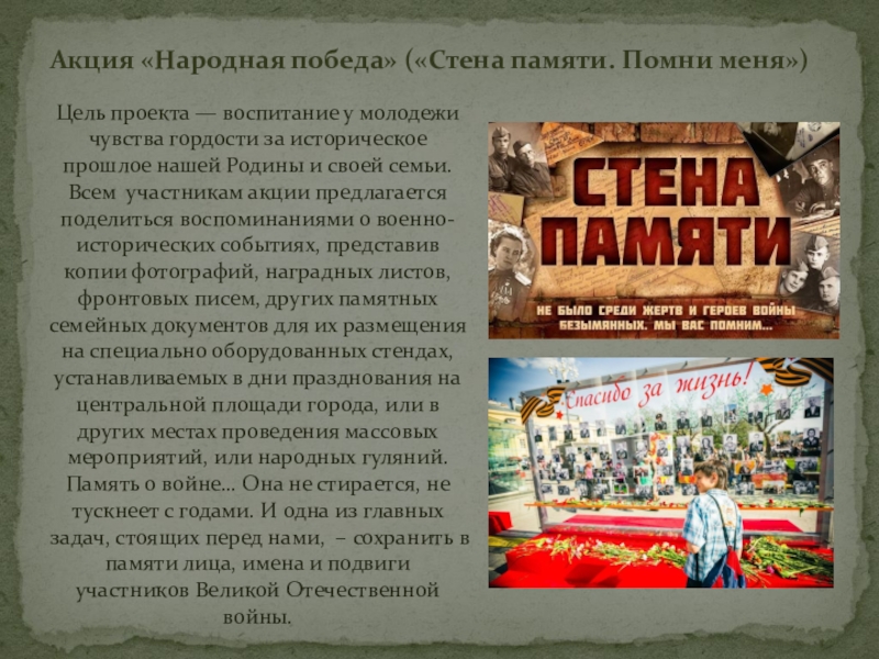 Акция «Народная победа» («Стена памяти. Помни меня»)