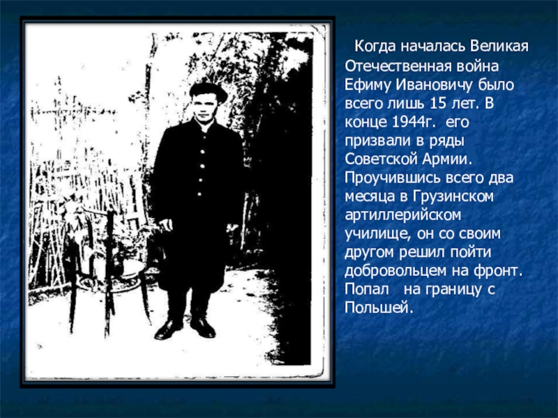 Слайд 9 Когда началась Великая Отечественная война Ефиму Ивановичу было всего