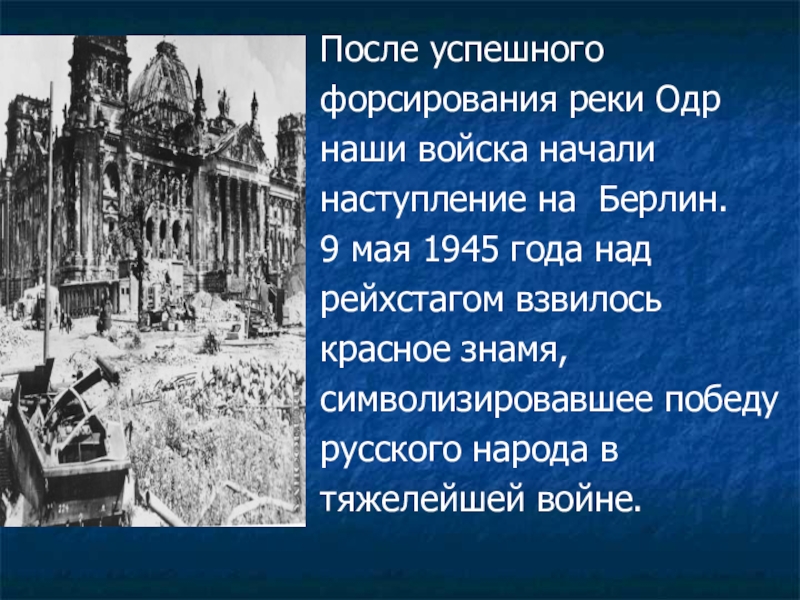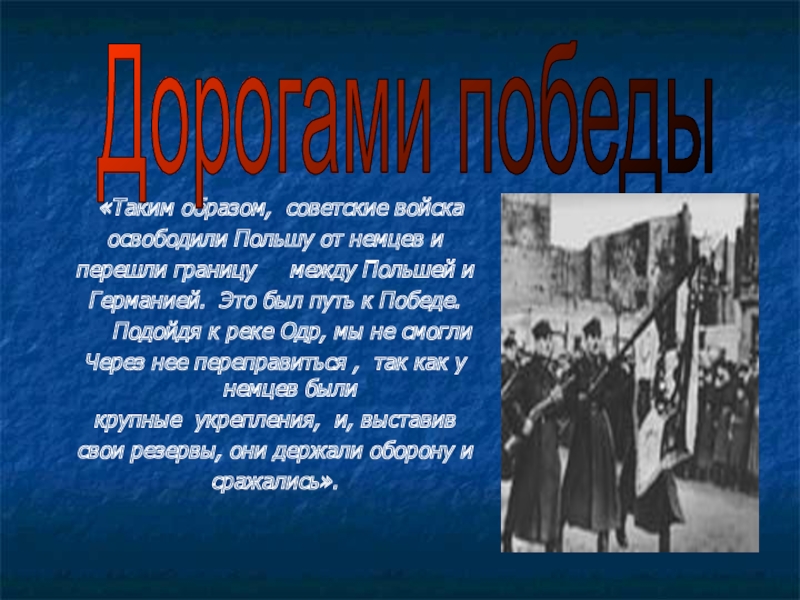 Слайд 1518-19 апреля 1945 года войска фронта в сложных условиях форсировали реку