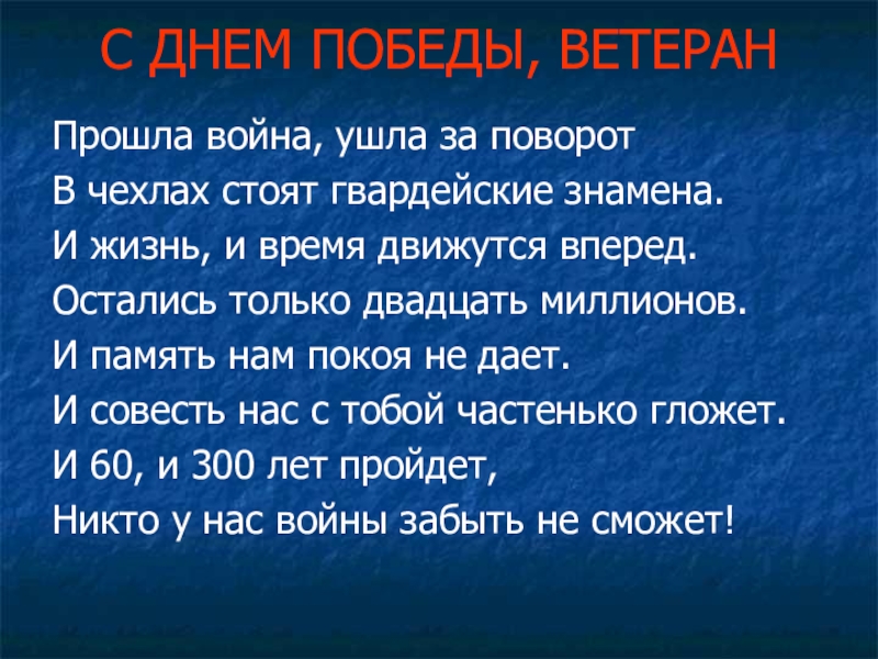 Слайд 18С ДНЕМ ПОБЕДЫ, ВЕТЕРАН
