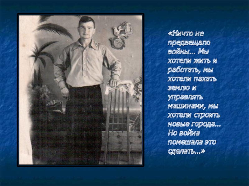 пахать землю и управлять машинами, мы хотели строить новые города… Но война помешала это сделать…»