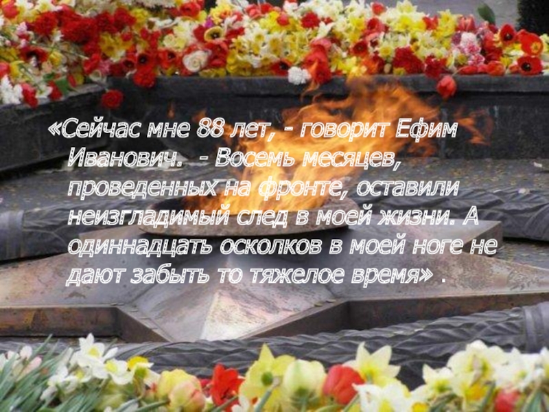 Слайд 17«Сейчас мне 88 лет, - говорит Ефим Иванович. - Восемь месяцев,