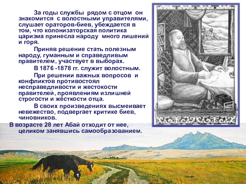 Слайд 9 За годы службы рядом с отцом он знакомится с волостными управителями,