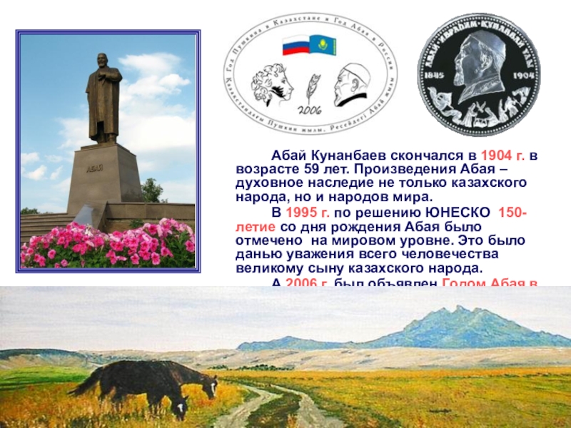 А 2006 г. был объявлен Годом Абая в России и Годом Пушкина в Казахстане.