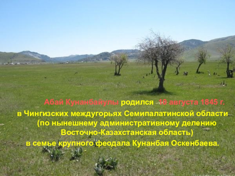 Слайд 6 Абай Кунанбайулы родился 10 августа 1845 г.