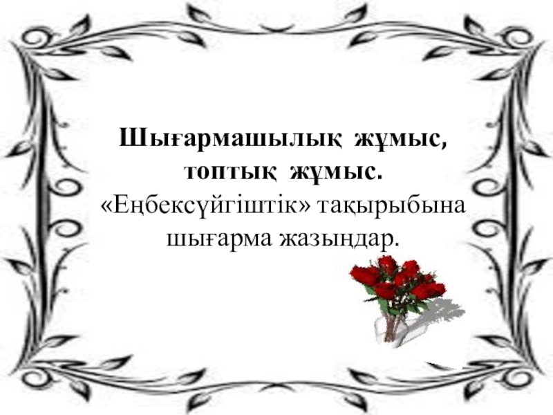 Шығармашылық жұмыс, топтық жұмыс.«Еңбексүйгіштік» тақырыбына шығарма жазыңдар.