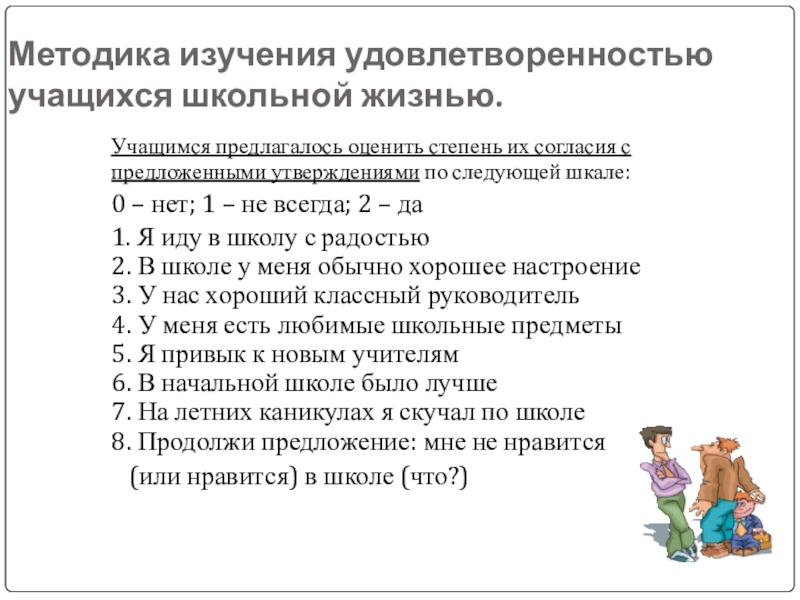 Слайд 12Методика изучения удовлетворенностью учащихся школьной жизнью.