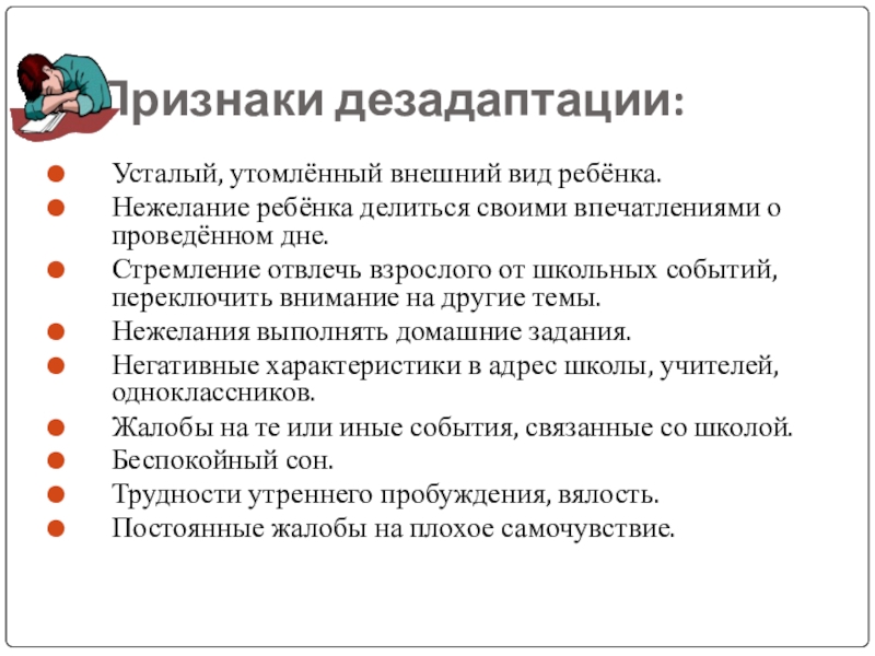 Если в семье произошли какие то события, повлиявшие на психологическое состояние ребенка (развод, отъезд в долгую командировку кого-то из родителей, рождение еще одного ребенка и тд.) сообщите об этом классному руководителю.