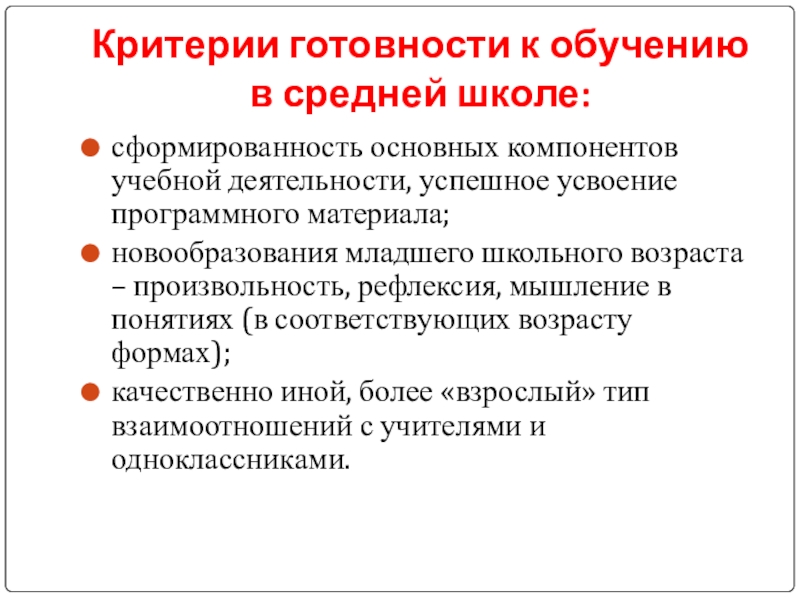 новообразования младшего школьного возраста – произвольность, рефлексия, мышление в понятиях (в соответствующих возрасту формах);