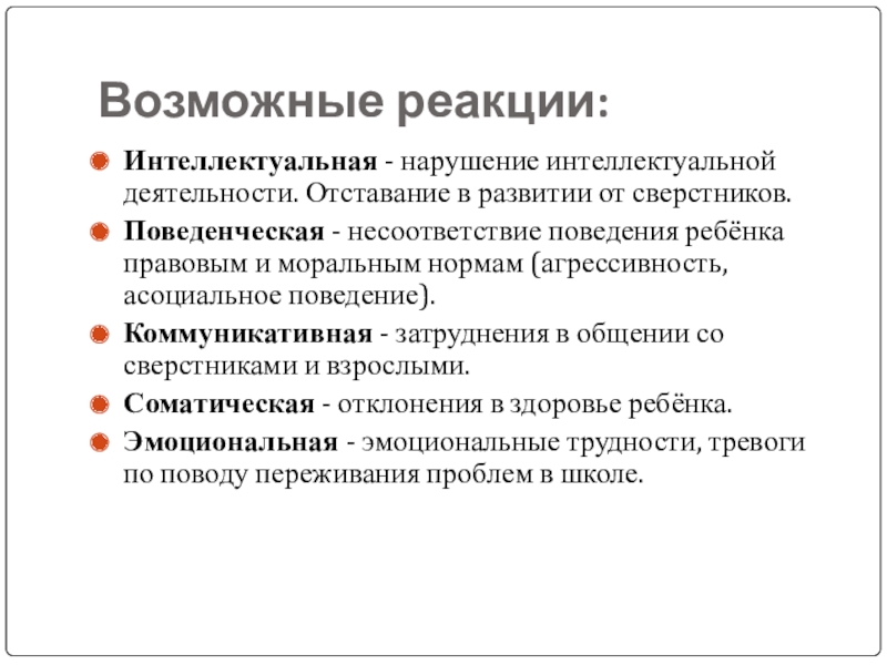 - несоответствие поведения ребёнка правовым и моральным нормам (агрессивность, асоциальное поведение).