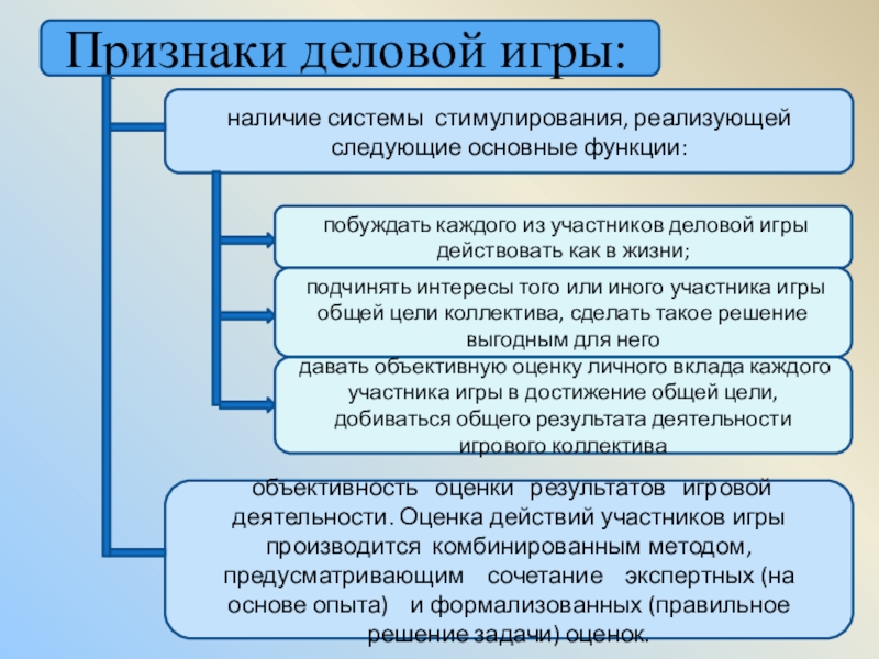 давать объективную оценку личного вклада каждого участника игры в достижение общей цели, добиваться общего результата деятельности игрового коллектива