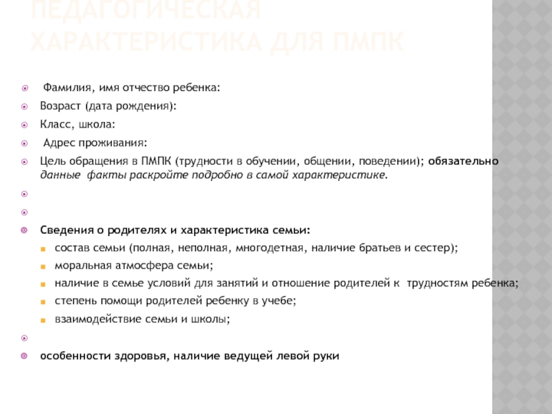 Слайд 13ПЕДАГОГИЧЕСКАЯ ХАРАКТЕРИСТИКА ДЛЯ ПМПК