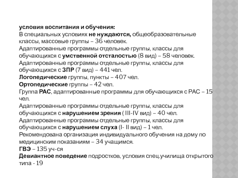В специальных условиях не нуждаются, общеобразовательные классы, массовые