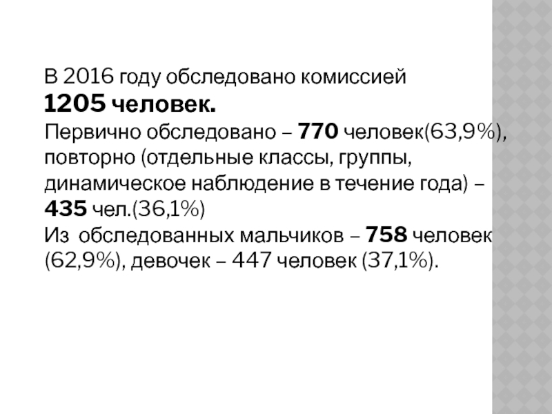 Из обследованных мальчиков – 758 человек (62,9%), девочек – 447 человек (37,1%).
