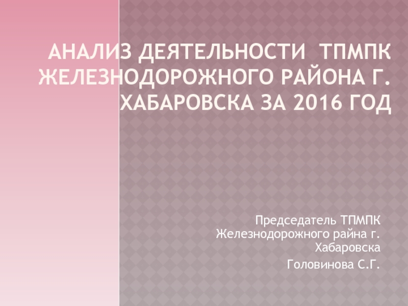 Слайд 1АНАЛИЗ ДЕЯТЕЛЬНОСТИ ТПМПК ЖЕЛЕЗНОДОРОЖНОГО РАЙОНА Г.ХАБАРОВСКА ЗА 2016 ГОД