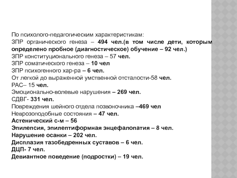 ЗПР органического генеза – 494 чел.(в том числе дети,