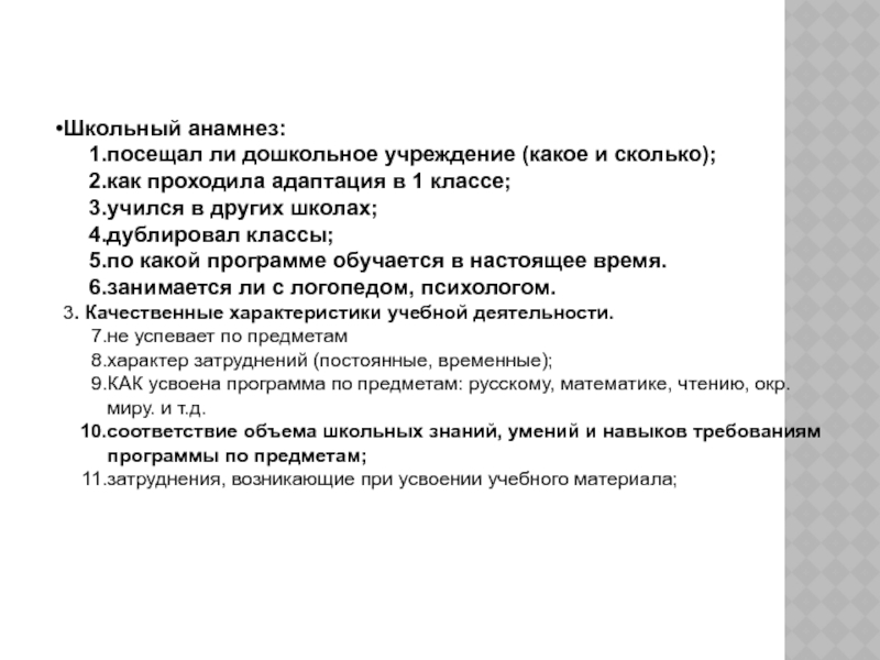 Слайд 14Школьный анамнез: