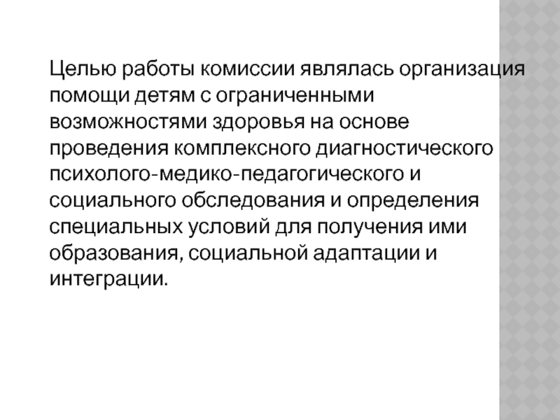 Слайд 3Целью работы комиссии являлась организация помощи детям с ограниченными возможностями здоровья